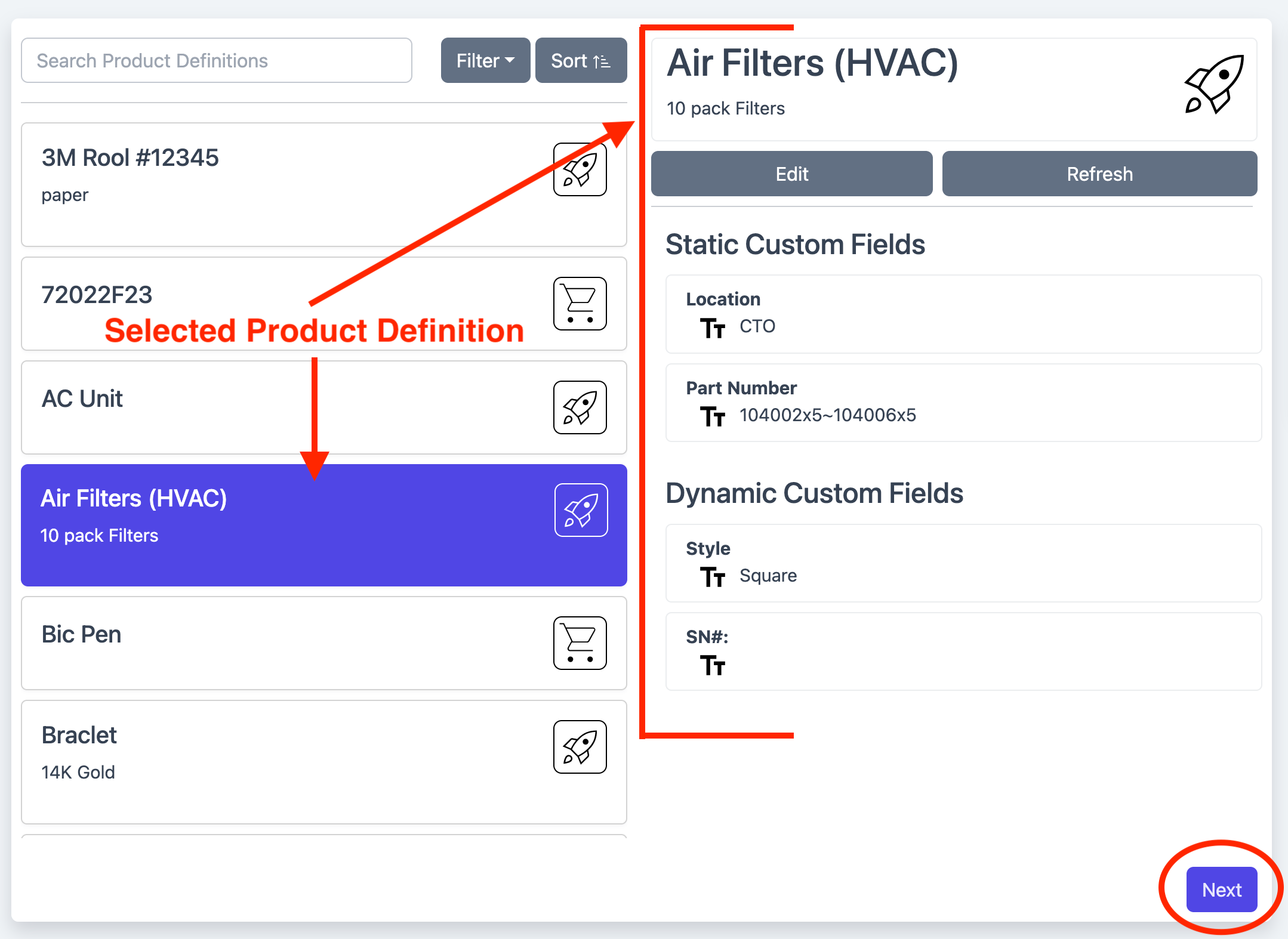 Click the Refresh button if you've made changes to the Product Definition want to refresh your local view.