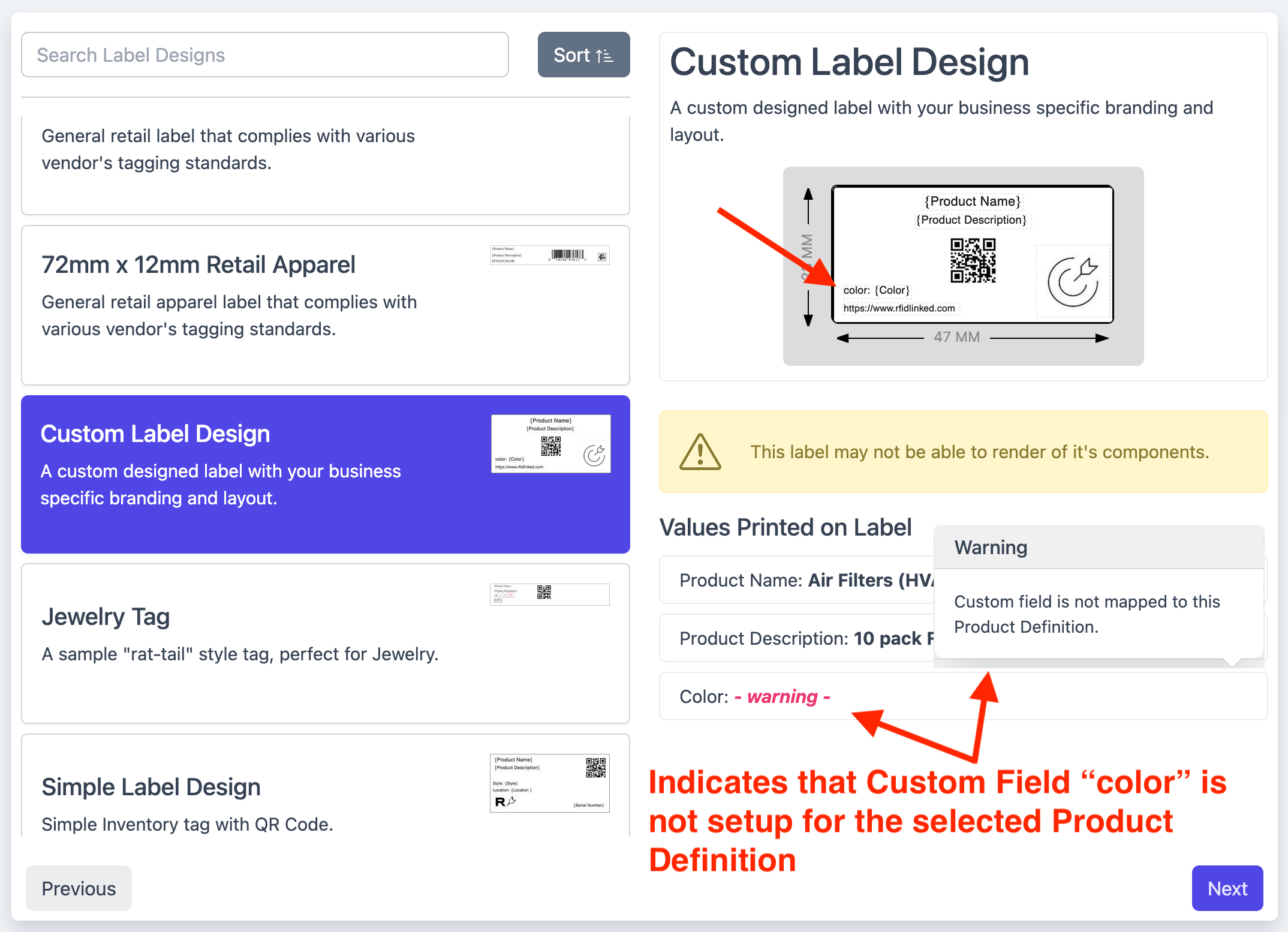 Printing RFID tags using Product Definitions is a core feature of RFIDLinked. It brings together all the foundational setup you’ve completed - Product Definitions, Custom Fields, and Label Designs - and allows you to generate fully encoded, scannable RFID tags that match your business needs.